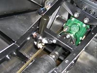 Then onto the reverse gearbox, this was a nightmare. I bolted it to the four black metal brackets and didn't tighten it up. I then fitted it to the chassis, and found it was a very tight fit, with the holes apparently not lining up. I got the two lower ones in, and then twenty minutes later managed to get the top ones in. Lots of hammering, levering, swearing... and bingo, in they went. I tightened everything up, and connected the other end of the driveshaft.